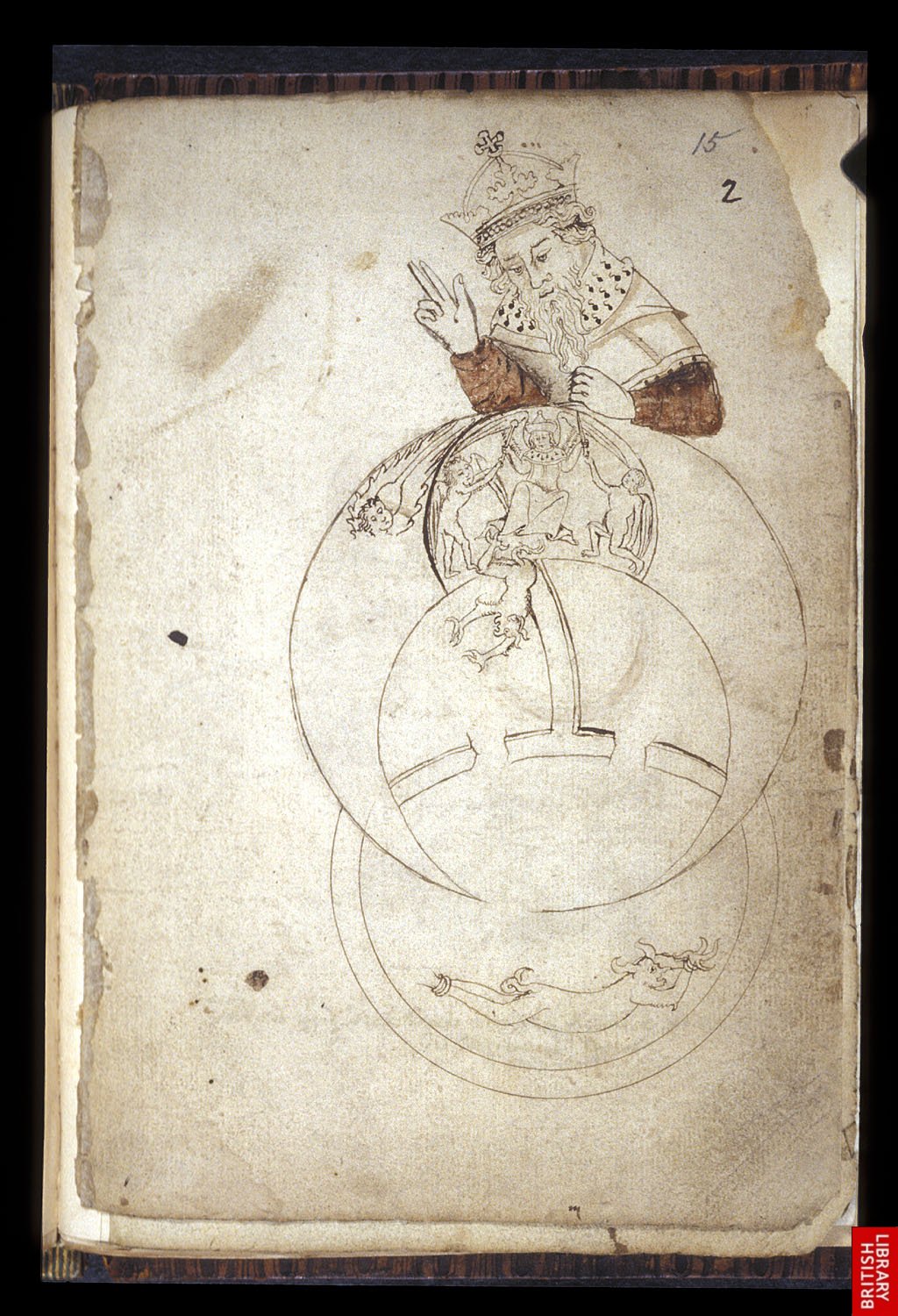 [63]65 Remarquons également les proportions de la tête et de la scène du premier plan. Il faut savoir encore à propos de cette figure, que le centre du carré est le sexe de l’homme, le centre du cercle est le nombril ; ils sont dans le rapport de la divine proportion ; le corps humain est donc bien le lieu de la conciliation.