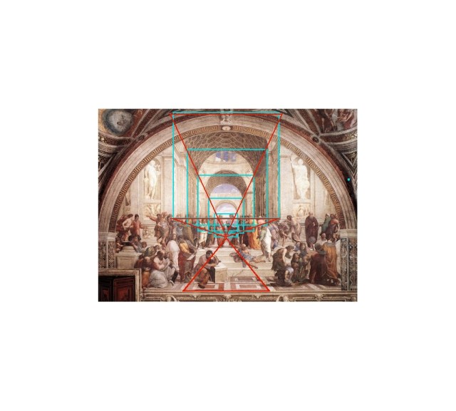 L’analyse de la structure géométrique le montrera : les figures fondamentales de la géométries, le carré, le cercle, le triangle se marient, s’entre-répondent comme aussi les points organisateurs de la construction : le centre perspectif, le centre géométrique, le point de fuite.