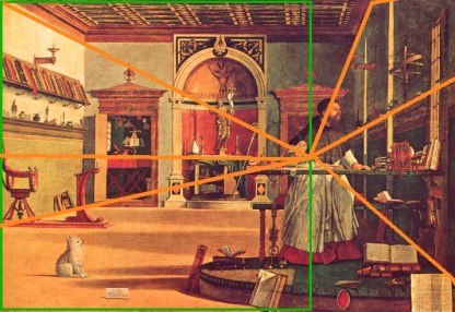[38] Nous avons vu que toutes ces fonctions sont également assurées par la géométrie et les rapports ; Il y a donc comme une double grille de lecture et la composition s’articule sur les relations, soient convergentes chez Raphaël, soit dialectiques chez Piero della Francesca ou Carpaccio.