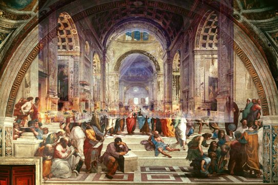 On peut se référer à la galerie commentée : Ecole d’ Athènes, Raphaël