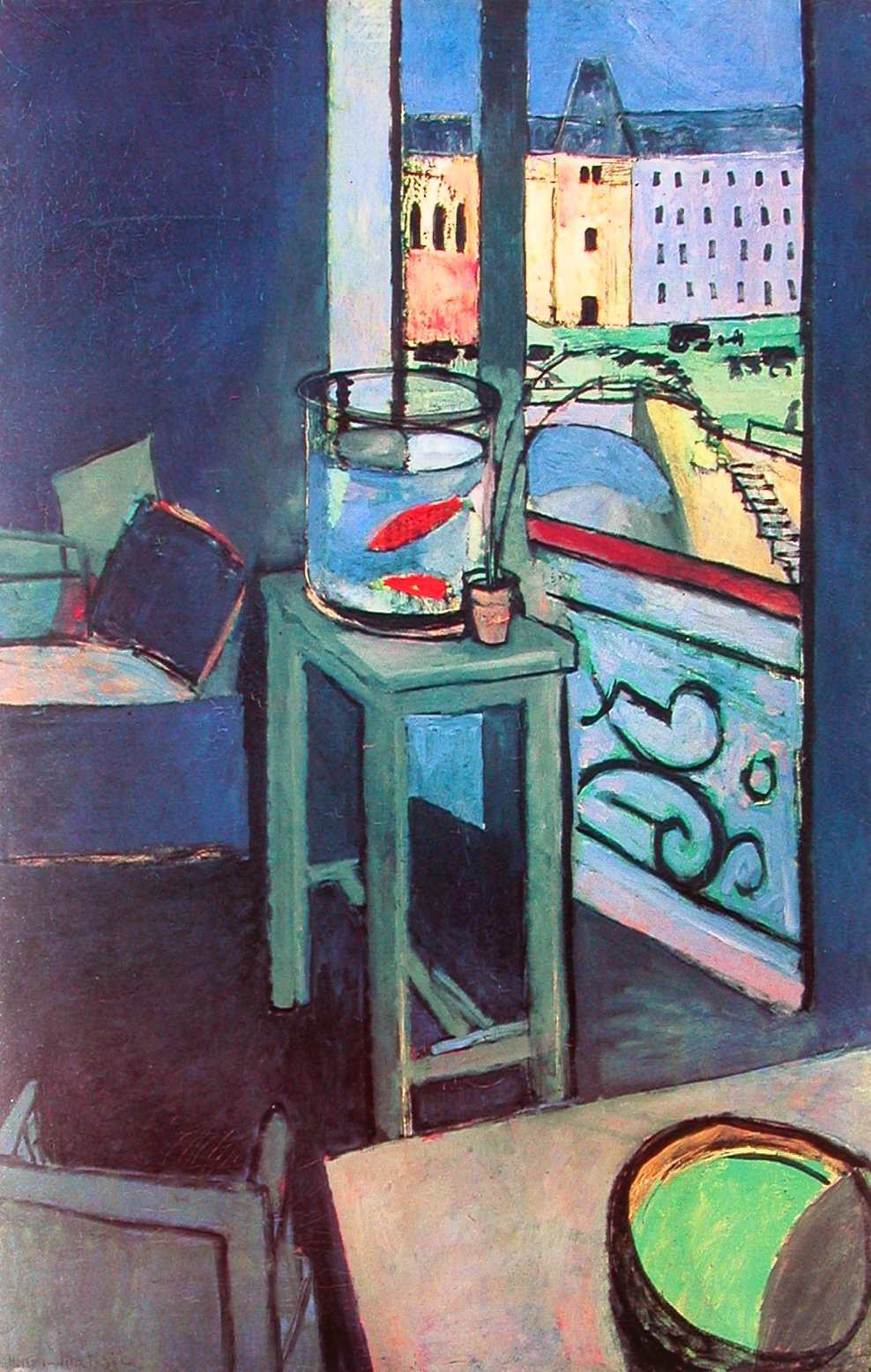 Ainsi à contrario apparaîtront les forces obscures qu’il tente d’éradiquer. L’âge d’or- la joie de vivre (1905-6) est l’état de ce que Matisse appelle son idée fixe. Selon Schneider, le même Schneider qui souligne comme un signe, la récurrence dans l’œuvre de Matisse des oranges et des poissons rouges: “ Peindre une orange, c’est poser sur la toile un ton pur ”, et l’orange est “ la pomme d’or ”; quand au poisson rouge, c’est le “ gold fish ”, celui qui échappe à la “ pesanteur des citoyens de l’âge du fer ” (P. Schneider).