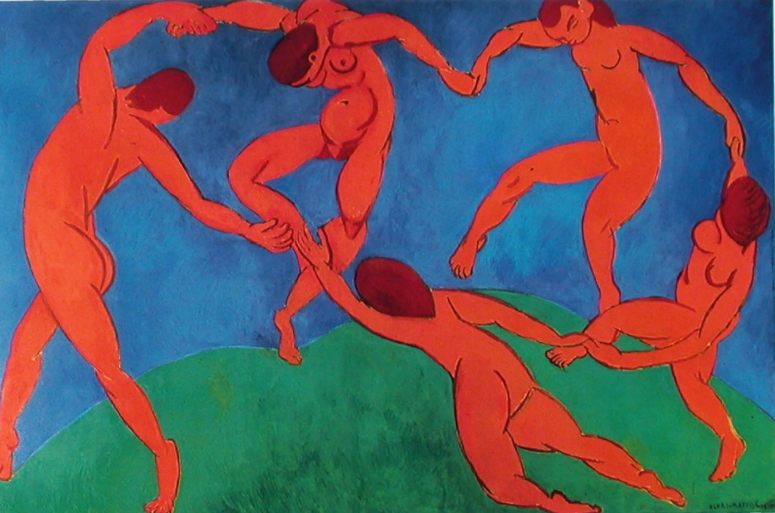 C’est donc l’inversion absolue de la danse des paysans de Breughel. Cette danse se déroule dans le plan du tableau, non dans celui de la profondeur, et les corps sont sans modelés, sans ombres, sans individualité notable (en cela il devance les exigences de Mondrian). Les couleurs ne sont pas naturelles et ces nus ne sont pas impudiques. La danse en ronde, par essence réunit les corps et dépasse leur individuation ; c’est une façon de mettre en scène, en piste, ce qui se passe entre les figures.