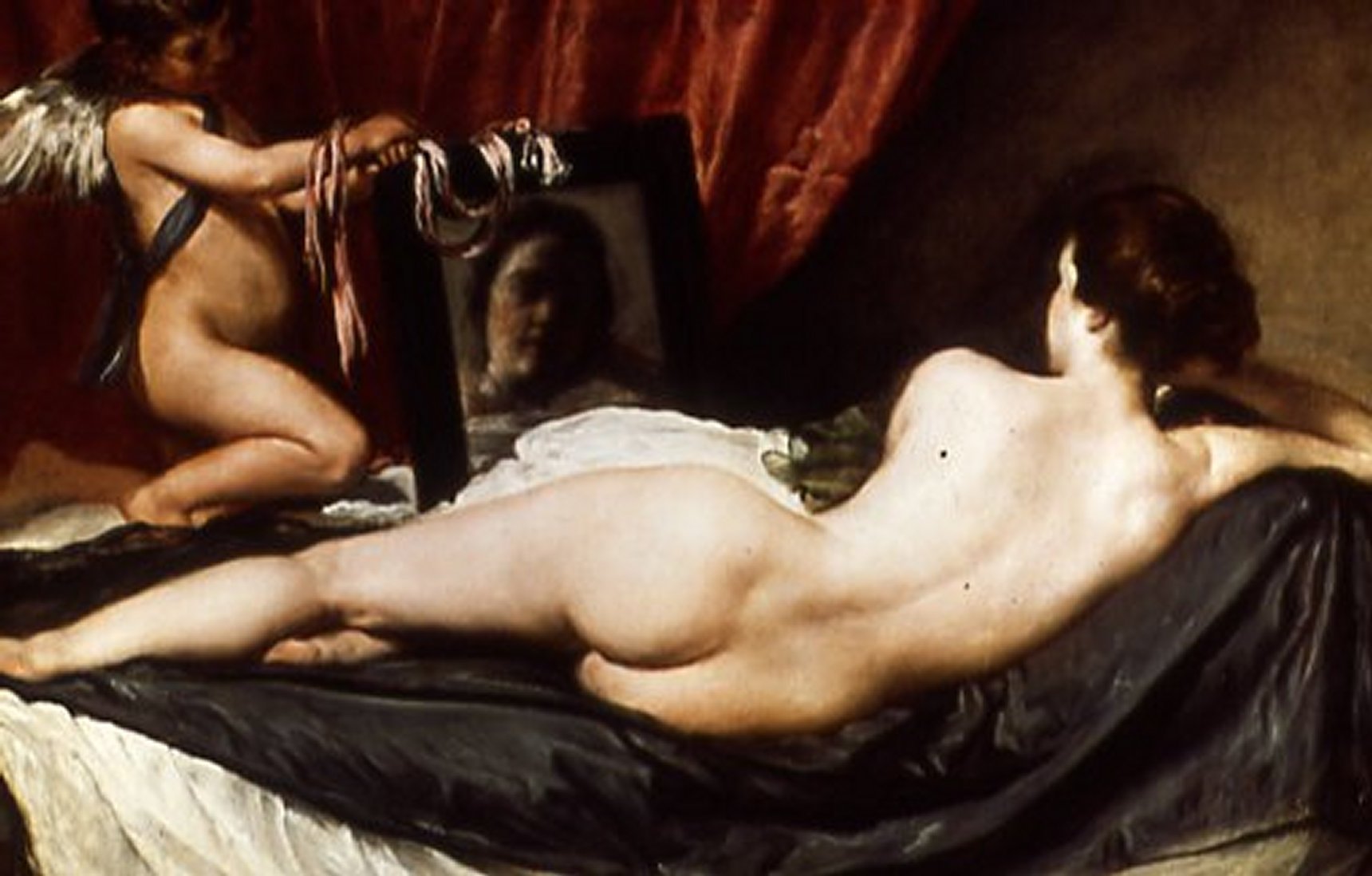 Vélasquez, La Vénus au miroir ; Ambigüité géniale de la beauté/ Vénus : de face, visage et regard, mais virtuelle et ombrée. Au premier plan, surface pure de la peau et corps sans visage. Double nature , au centre : rien.