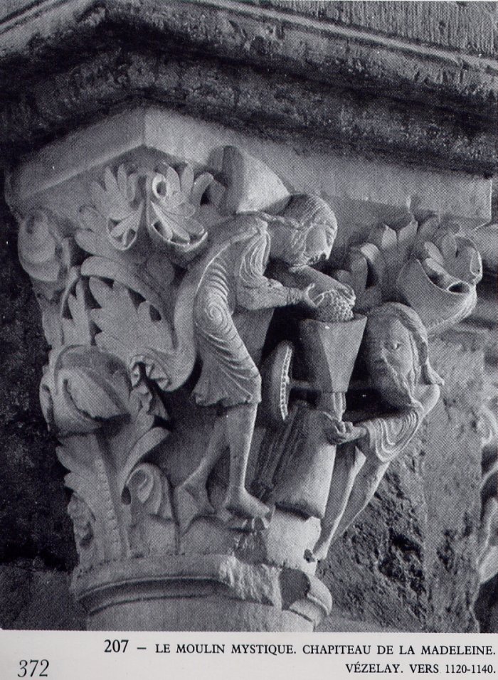 Le fameux passage par la meule du grain indigeste à la farine fluide…la roue en croix auréolée ( cercle et orthogonalité réunis) etc..La figure christique comme celle du Passeur