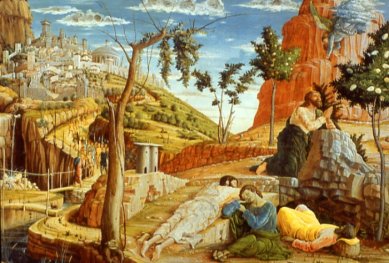 Mantegna réussit a introduire les accidents de terrain, les ondulations, dans un espace parfaitement conçu comme profond et réglé ; il ose même ce que seul Breughel fera, à savoir des ellipses et des effets de grand angle. Plus la transparence que la mesure de l’espace…