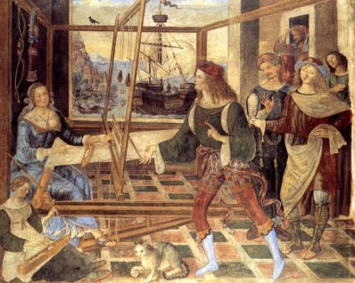 Pinturicchio montre un savoir aigu de la perspective et des jeux de cadres, boîtes et dallages en damiers dans cet étonnant Retour d’Ulysse..
