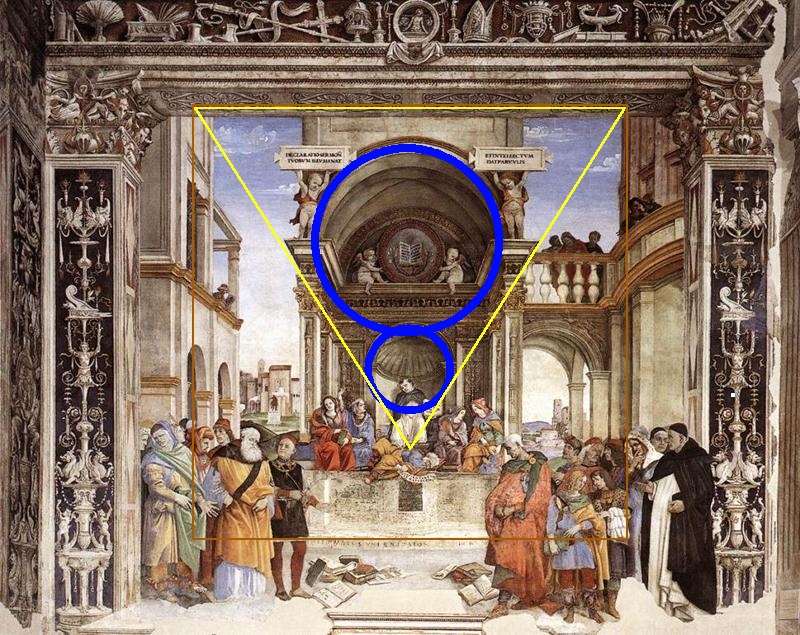 Lippi annonce clairement Raphaël dans son usage de la géométrie associée à la conciliation théologique entre raison et foi contre les hérétiques.