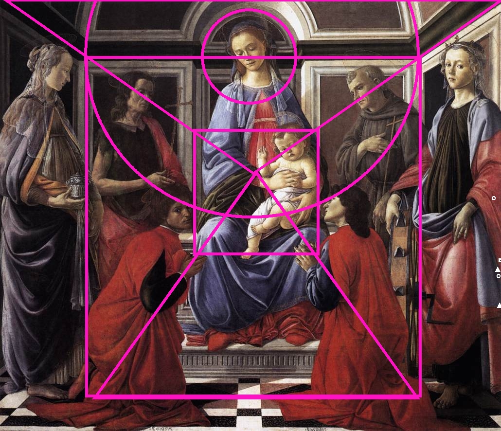 Botticcelli dans un ordre classique. Cette fois, Marie portant Jésus comme l’horizon le point de fuite, la symétrie et l’ordre sont de rigueur.