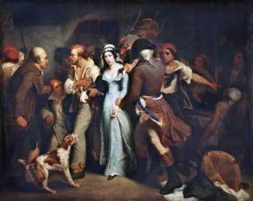 « L’arrestation de Charlotte Corday », par Henry Scheffer ( frère d’Ary), qui la réhabilite comme courageuse contre l’ignoble ami du peuple Jean Paul Marat…..il y a un enjeu politique clair contre certains courants « dangereux » de l’héritage révolutionnaire ; il s’agit présentement de s’allier la tradition girondine..