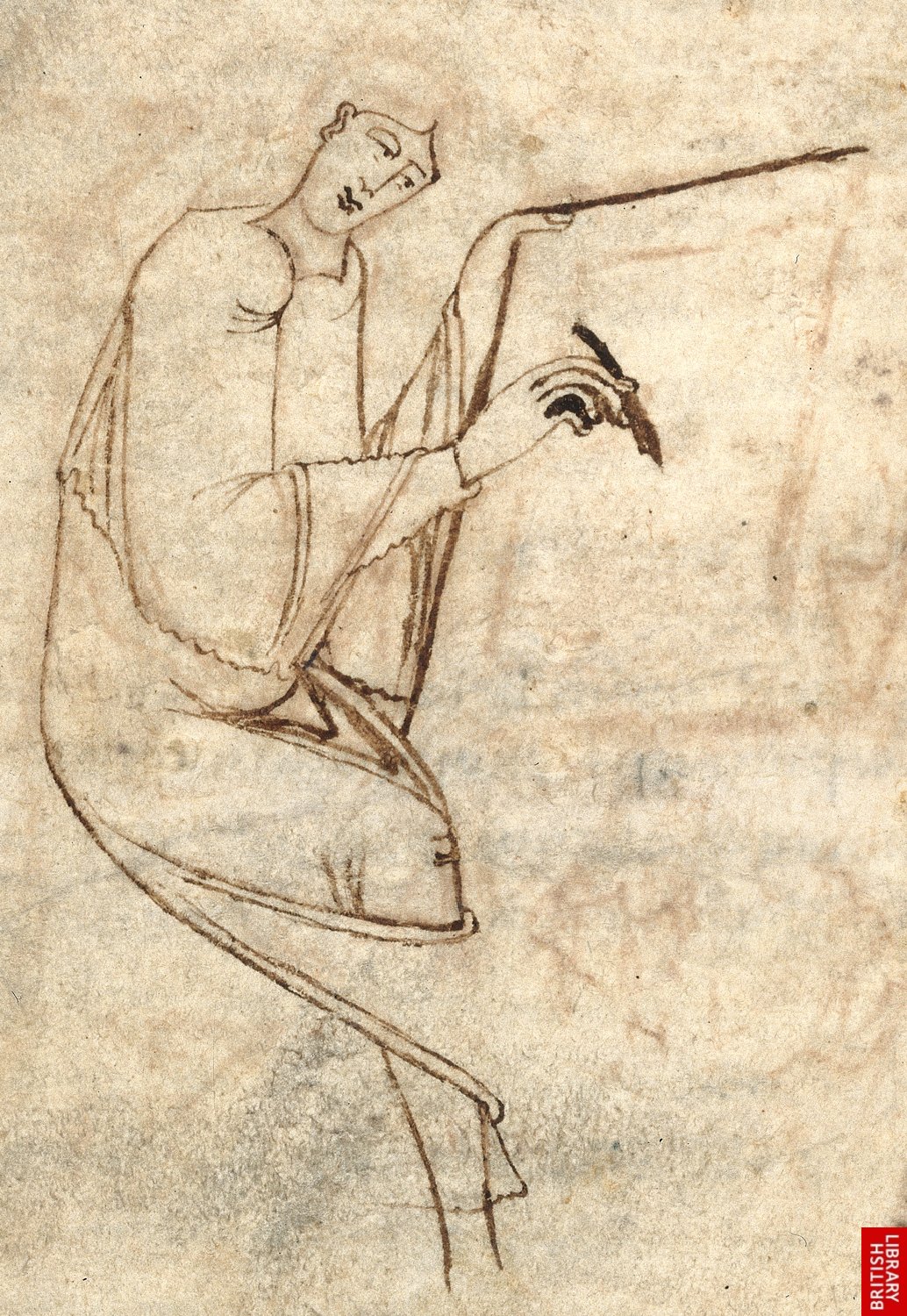 10e siècle, dessin préparatoire mettant en scène l’auteur ou l’illustrateur ou le copiste, comme proche par la pratique..On voit aussi comment le dessin et l’écriture sont proches par nature ; désigner par les traits.