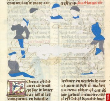 14e, Grandes chroniques de France, Exécution d’ Enguerrand de Marigny ( templier) par Philippe le Bel. Nous retrouvons une histoire presque récente et le nombre de manuscrit relatant les exécutions est important, comme consolidation du pouvoir et manière d’assumer des actes d’autorité.
