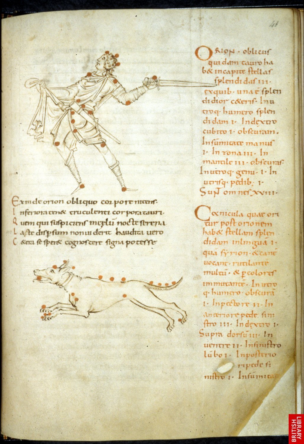 Astronomie d’après Cicéron, Orion et la constellation du chien. Les almanachs et traités d’astronomie sont aussi parmi les plus répandus des manuscrits de besace…Ici, 10ème siècle.