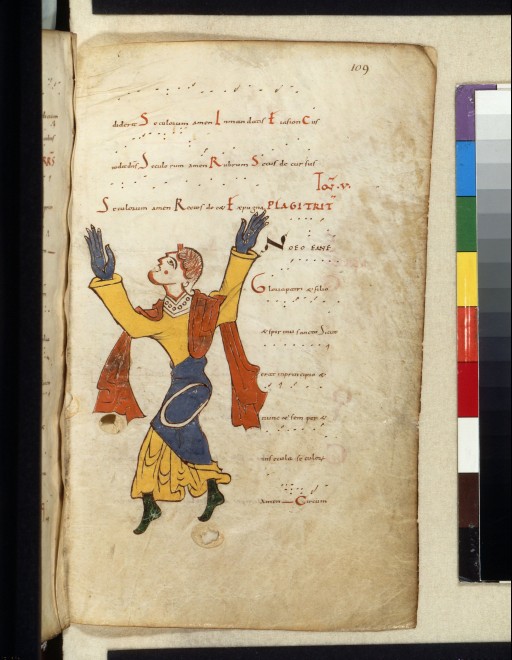 11ème ,Auch, un tonaire ( traité de musique) caractéristique par les couleurs de l’influence espagnole.La présence du jaune notamment.