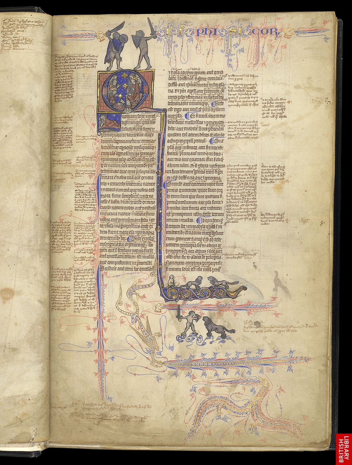 13eme, Manuscrit de « besace » typique d’un genre associant les cadres précieux, les lettrines soignées, les figures observées.