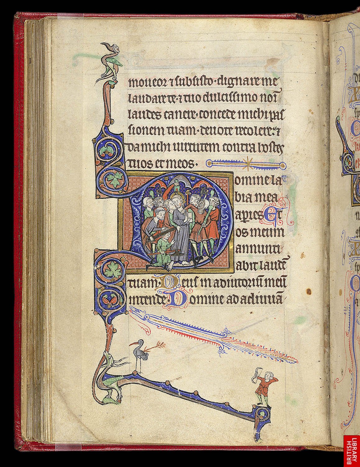 Livre d’heures du 13ème,avec la trahison de Judas inscrite dans la lettre. On remarque d’extraordinaires et libres digressions graphiques.