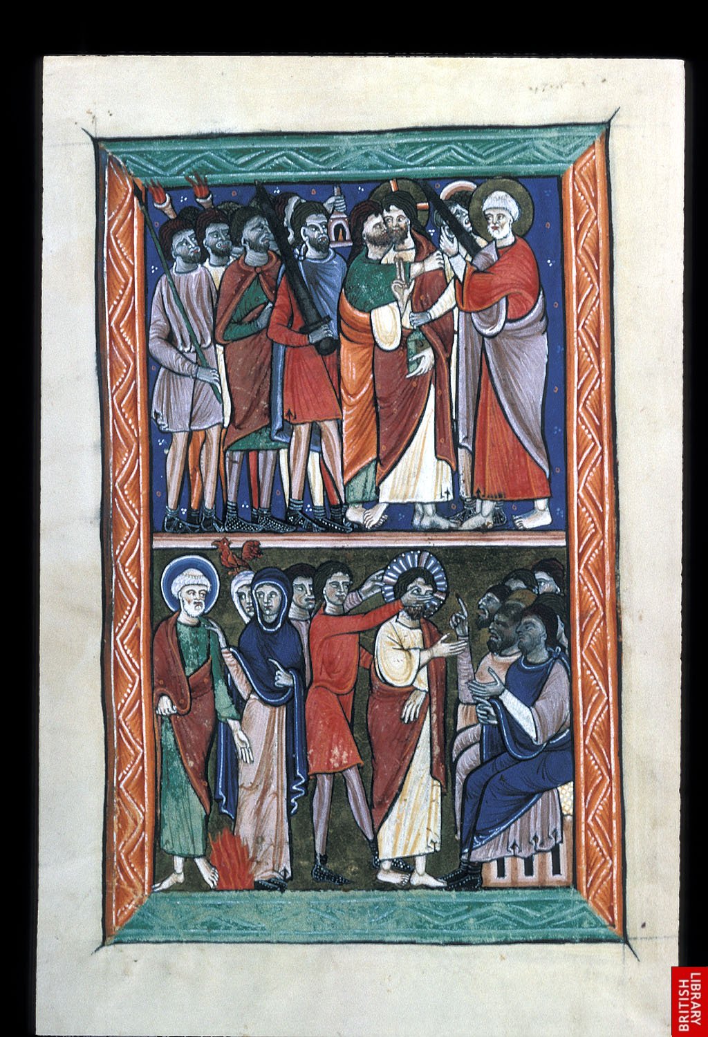 Beau psautier du 13ème, sur lequel on voit se constituer l’iconographie classique des scènes du nouveau testament; ici, la trahison de Judas.