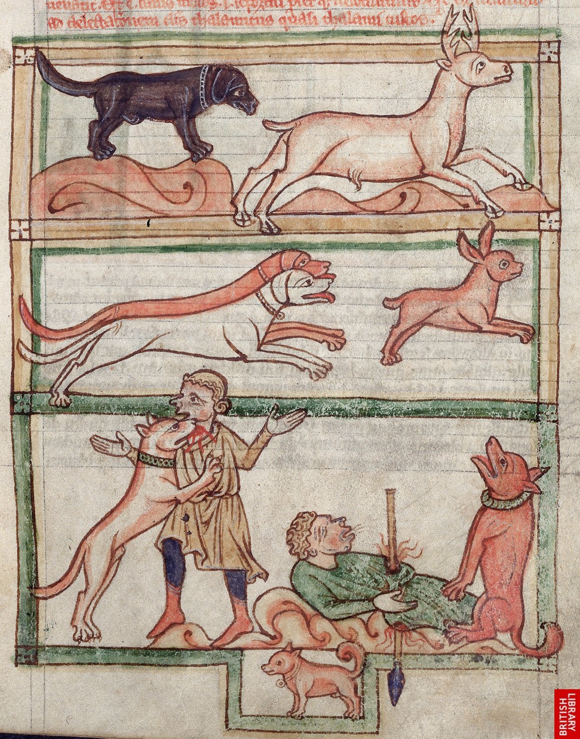 Bestiaire anglais du 13ème. Les différentes qualités du chien, y compris la fidélité au maître mort!!