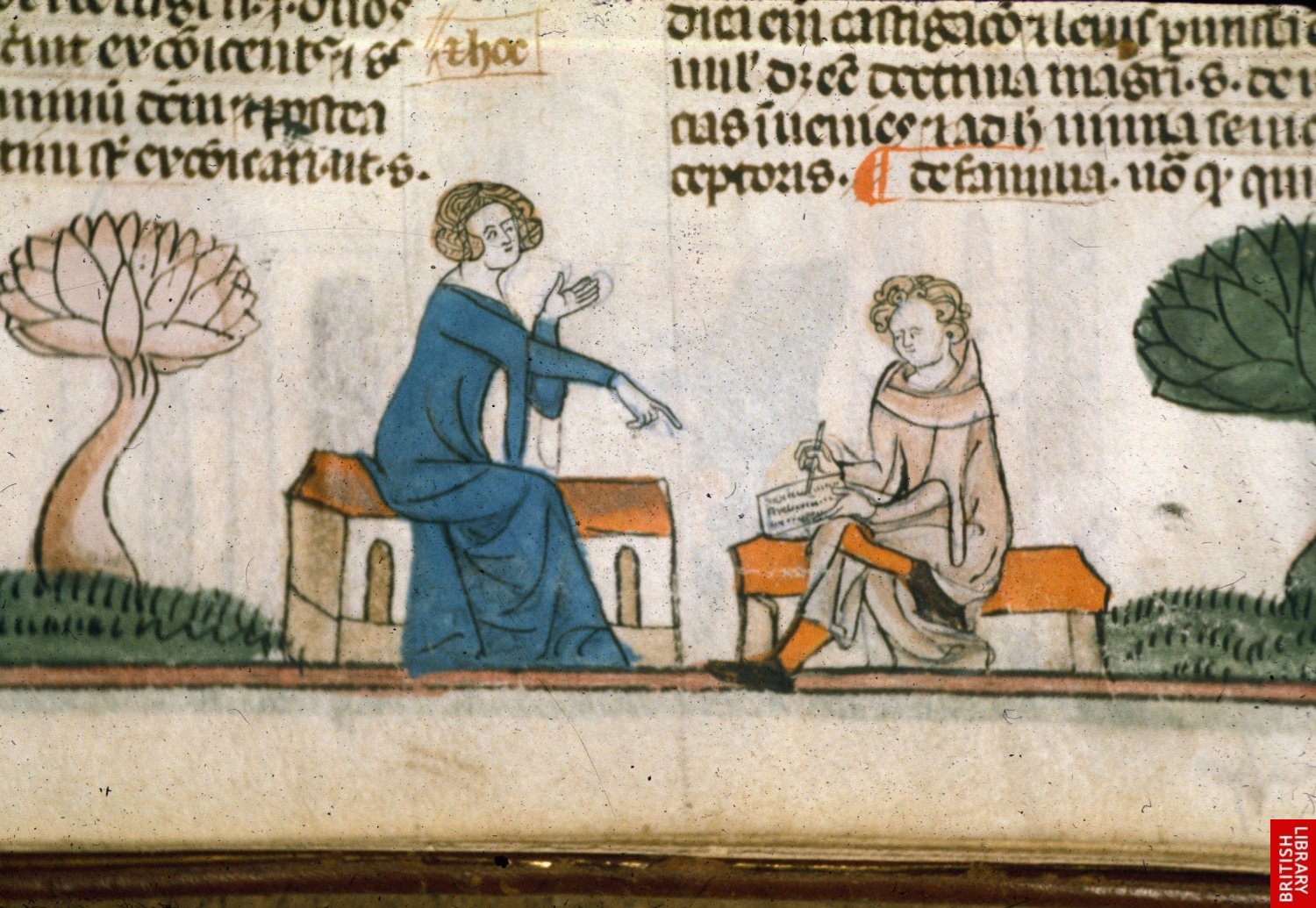Le magnifique texte de Boèce sur la Consolation et la philosophie, des illustrations complexes, en pleine page, cherchent à rendre la subtilité des notions, par une utilisation de l’espace en profondeur et des figures allégoriques, héritées des psychomachies des siècles précédents.