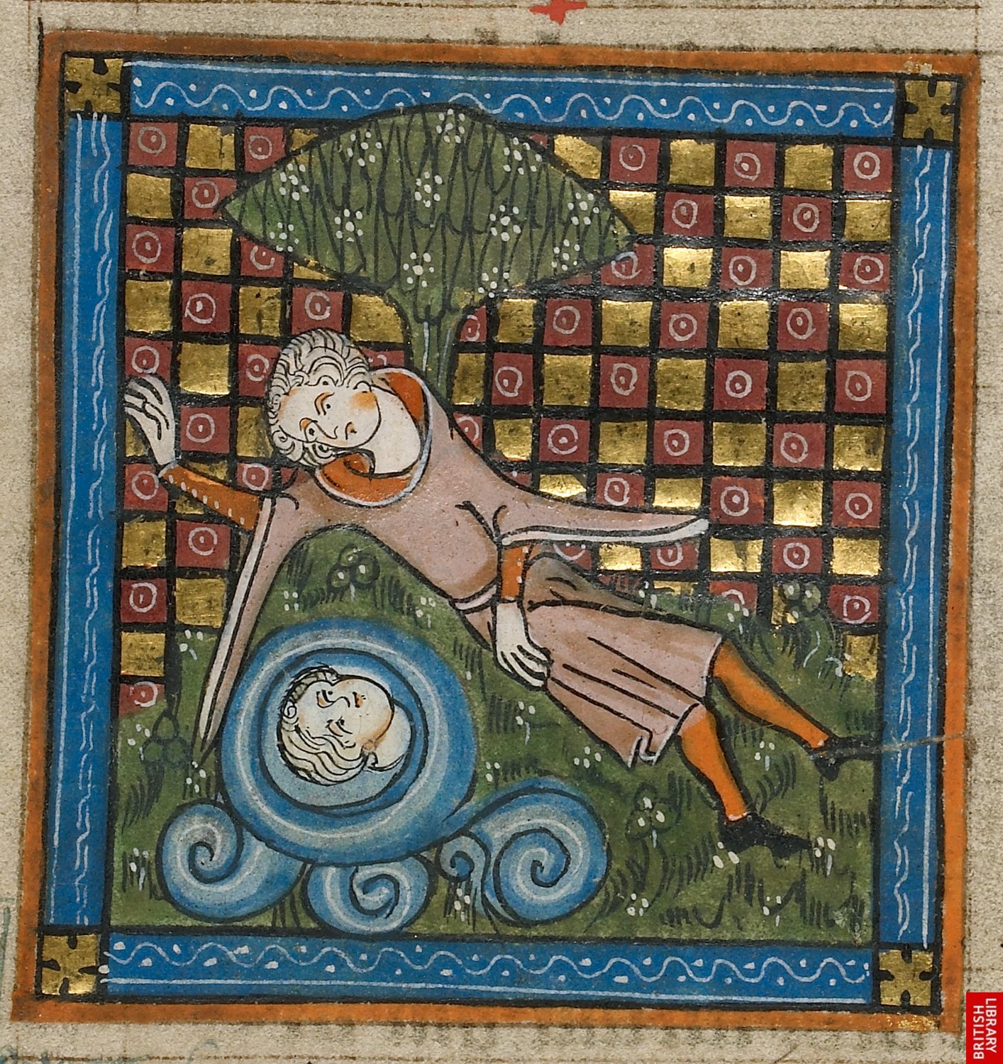 Un autre Narcisse du 14e. Plus modelé et inscrit dans l’espace ; plus proche de la mimésis de la Renaissance. Bien que le fond soit encore identifiable à une tenture.