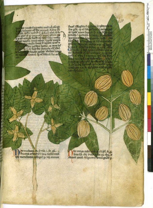 Herbier du 14ème siècle de Manfredus de Monte., extraordinaire déploiement de l’image débordant sur le texte ; la reconnaissance et la mimésis du cocotier, étant essentielles dans le cas très spécifique des herbiers, à vocation thérapeutique , nutritive, voire magique bien sûr.