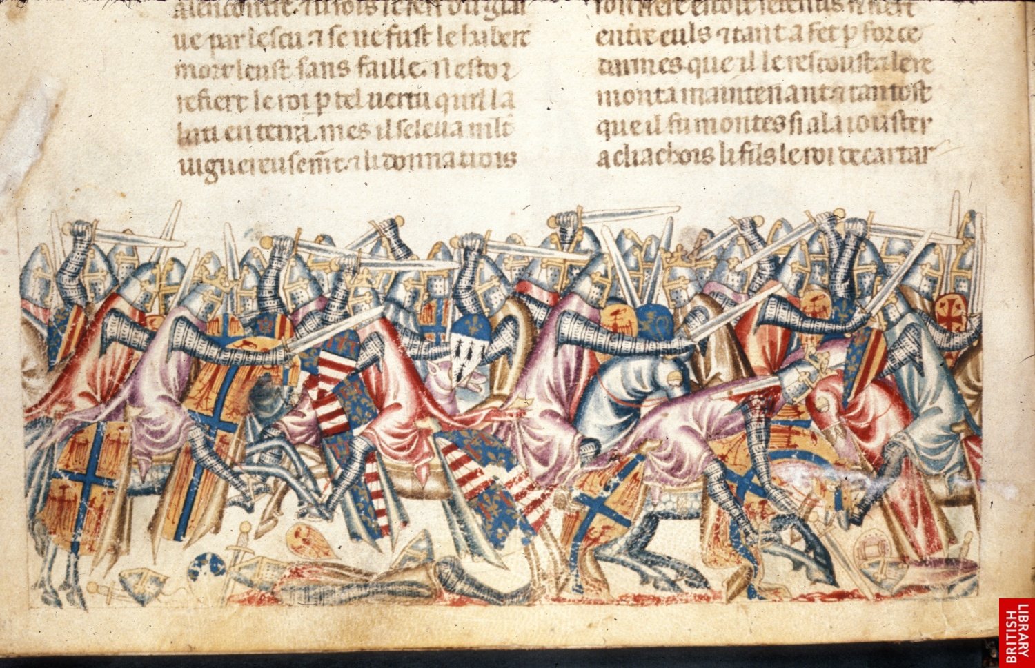 détail d’une page du manuscrit précédent( Naples,14e). Scène de bataille entre grecs et troyens!!