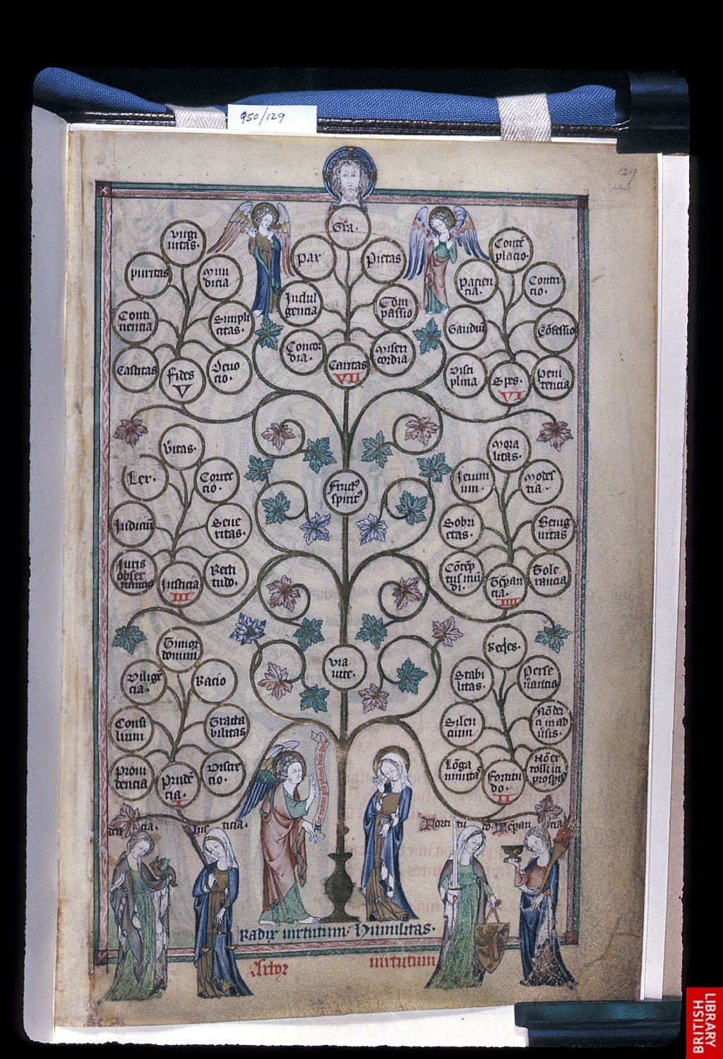 L’arbre des vertus ; le modèle de pensée en arborescence est fameux et opère un contrepoint dynamique aux organisations symétriques. Psautier du 14ème.