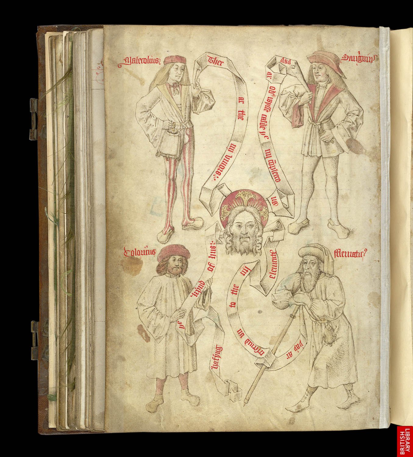 Genre d’almanach du 15ème avec les 4 humeurs, classification des caractères ( bile, sang, lymphe, noire).