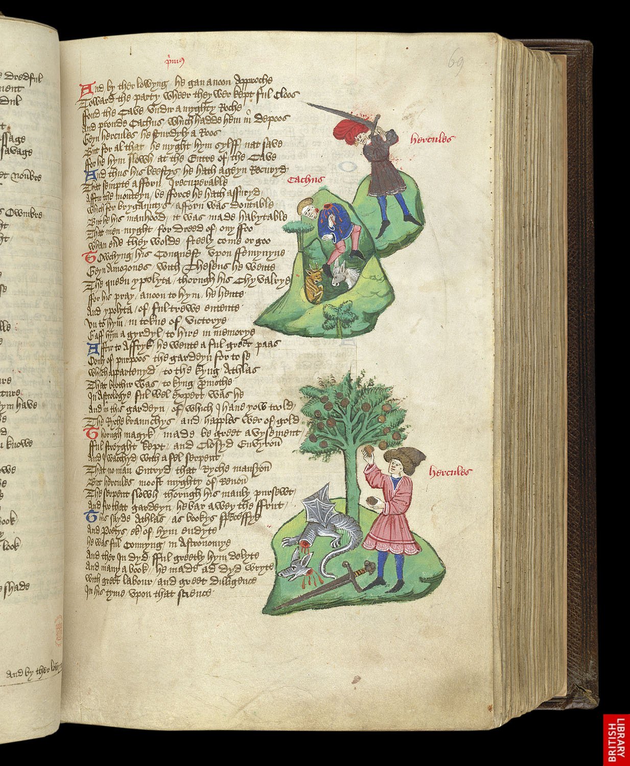 Boccace, l’un des auteurs les plus traduits et illustré, de manière variée, comme le montrent les exemples ci dessus et suivants ; ici la formule fluide et sans cadre, il s’agit bien d’Hercule et de l’hydre!!!