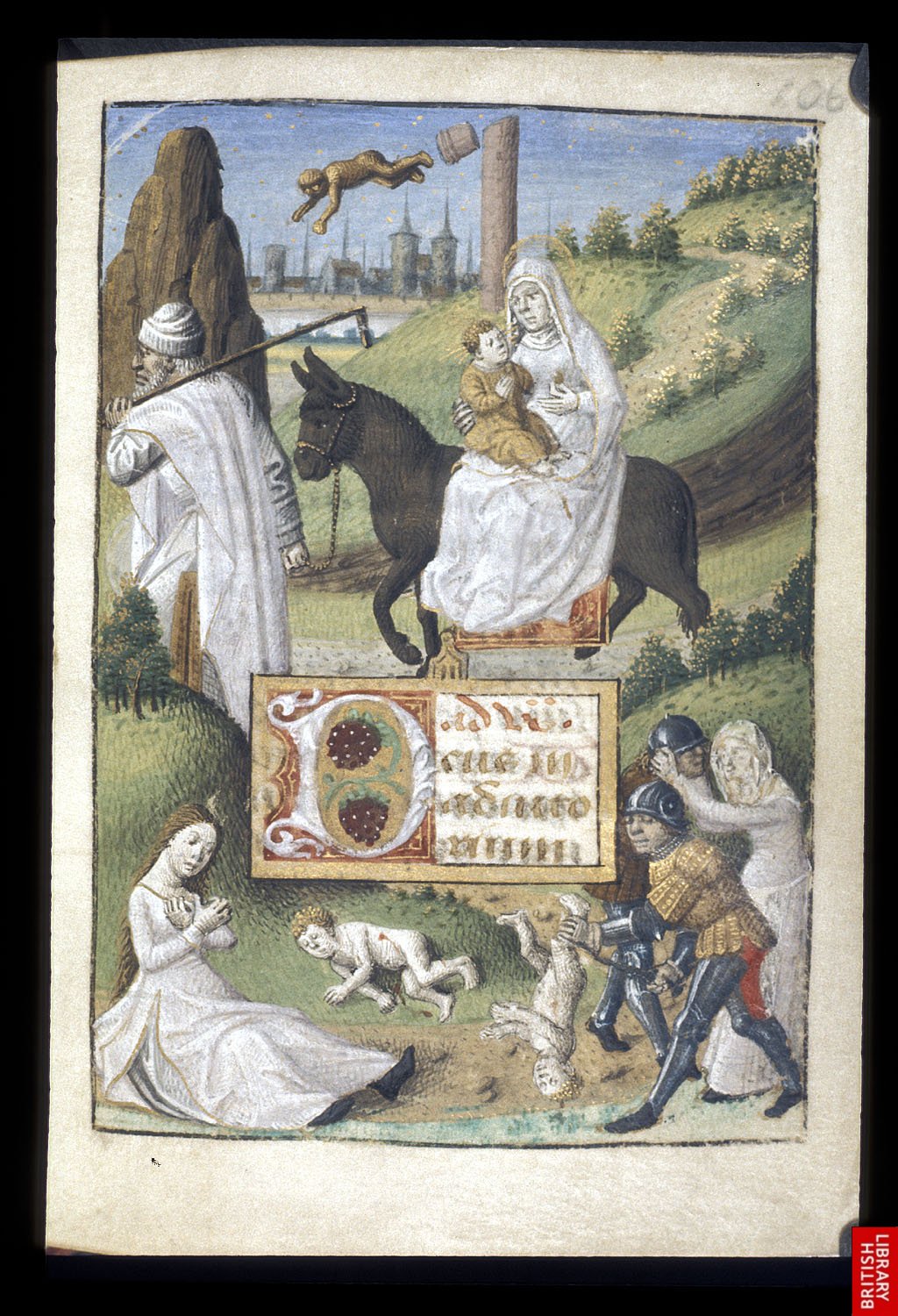 Un autre livre d’heures parisien, extrêmement dense en variations et digressions. Les enluminures deviennent de véritables petites fenêtres ; la représentation en perspective, héritée des italiens et flamands se remarque clairement malgré les maladresses.