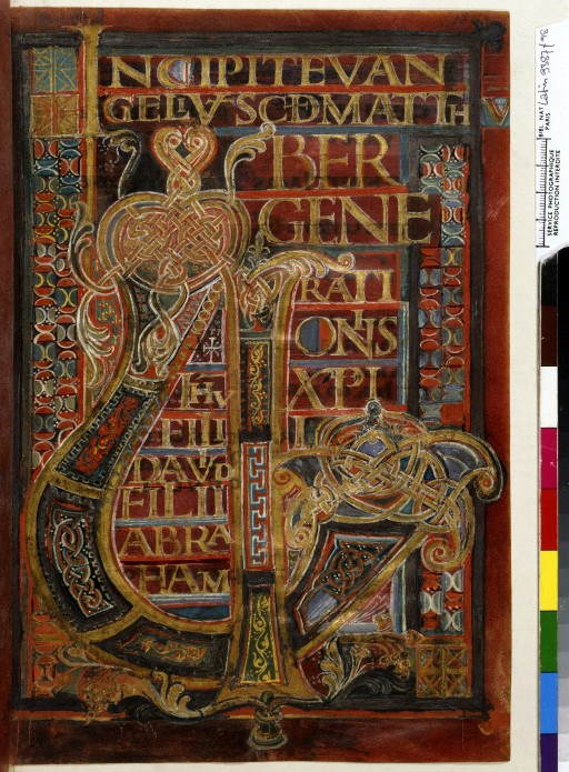Cet évangile du 9eme siècle est vraisemblablement un exemple type de manuscrit de cérémonie. Sa densité, de style nordique-celtique, l’instaure en objet sacré et précieux. Proche du livre de Kells, dans le style et la fonction.