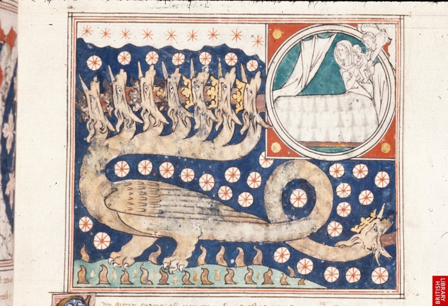 14 Apocalypse, with commentary (The ‘Queen Mary Apocalypse’)Dragon and woman in bed