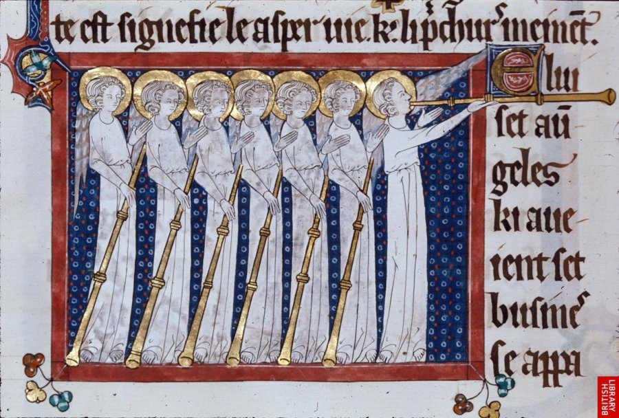 14e.s. Apocalypse anglaise ; l’élégance extraordinaire des lignes et de l’occupation de l’espace compense la sobriété des couleurs.