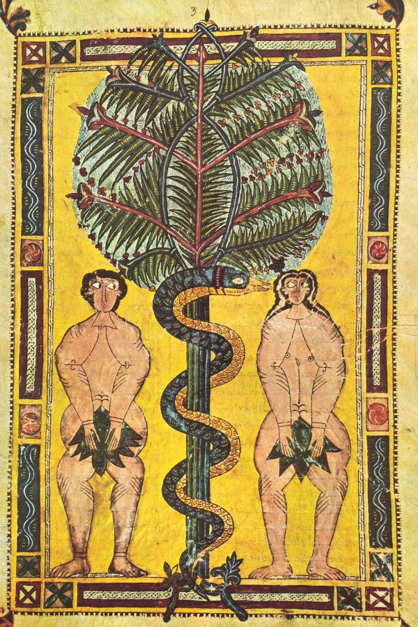 Extraordinaires Adam et Eve, dans le Beatus Facundus, du début 11e. Bien qu’anatomiquement décalés, il y a une humanité incroyable dans leur posture et dans leurs regards.