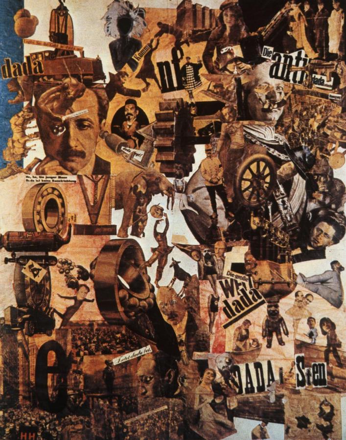 Collage précurseur de Hannah Höch, dont le titre » coupé au couteau de cuisine », exprime clairement le contexte de l’intime et d’une certaine rage positive. Höch, Figure essentielle du dadaïsme.