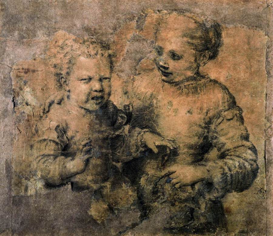 Old Woman Studying the Alphabet with a Laughing Girl