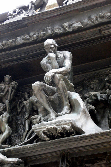 le penseur, en place sur la porte de l’enfer, replié sur lui même, crée son espace et ses jeux d’ombres intimes ; Ugolin, Adam partagent ce type de disposition.