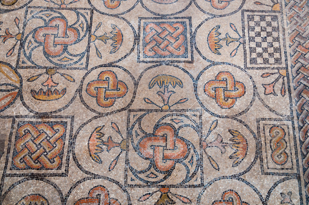 Symbols mosaics inside Basilica di Aquileia in Italy