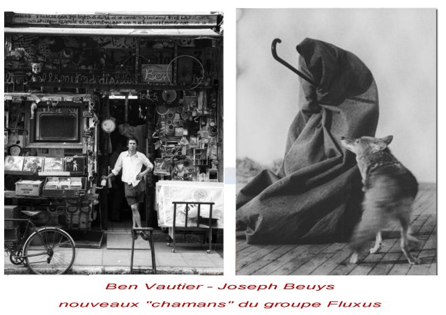 Au delà des regards formels sur les arts africains, d’une façon plus globale, c’est la fonction artistique qui est questionnée ; la dimension cathartique, sociétale assumée par de nouveaux artistes, qui s’imposent comme médiateurs. Ben et Beuys, par exemple, issus du courant Fluxus. cette manière de renouer vie et pratique artistique, sans filtres est directement issue des arts dits premiers.