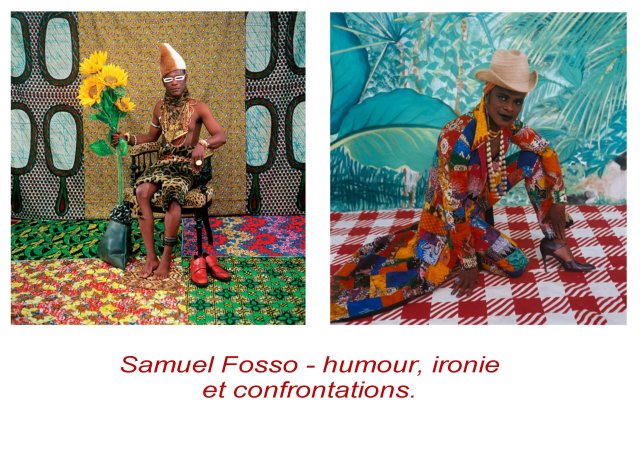 Ironie délibérée et très savante des photos de Fosso. Croisements de genres, de cultures, de modes. Jeux sur costumes, coutumes, habits et habitats, motifs et signes.
