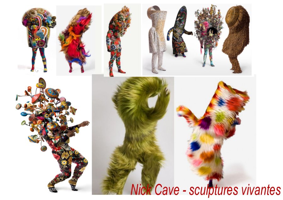 Chorégraphe et plasticien, Nick cave réinvente les costumes contraignants, pour des ballets et danses modernes. Frénésie et jeu. Anonymat .