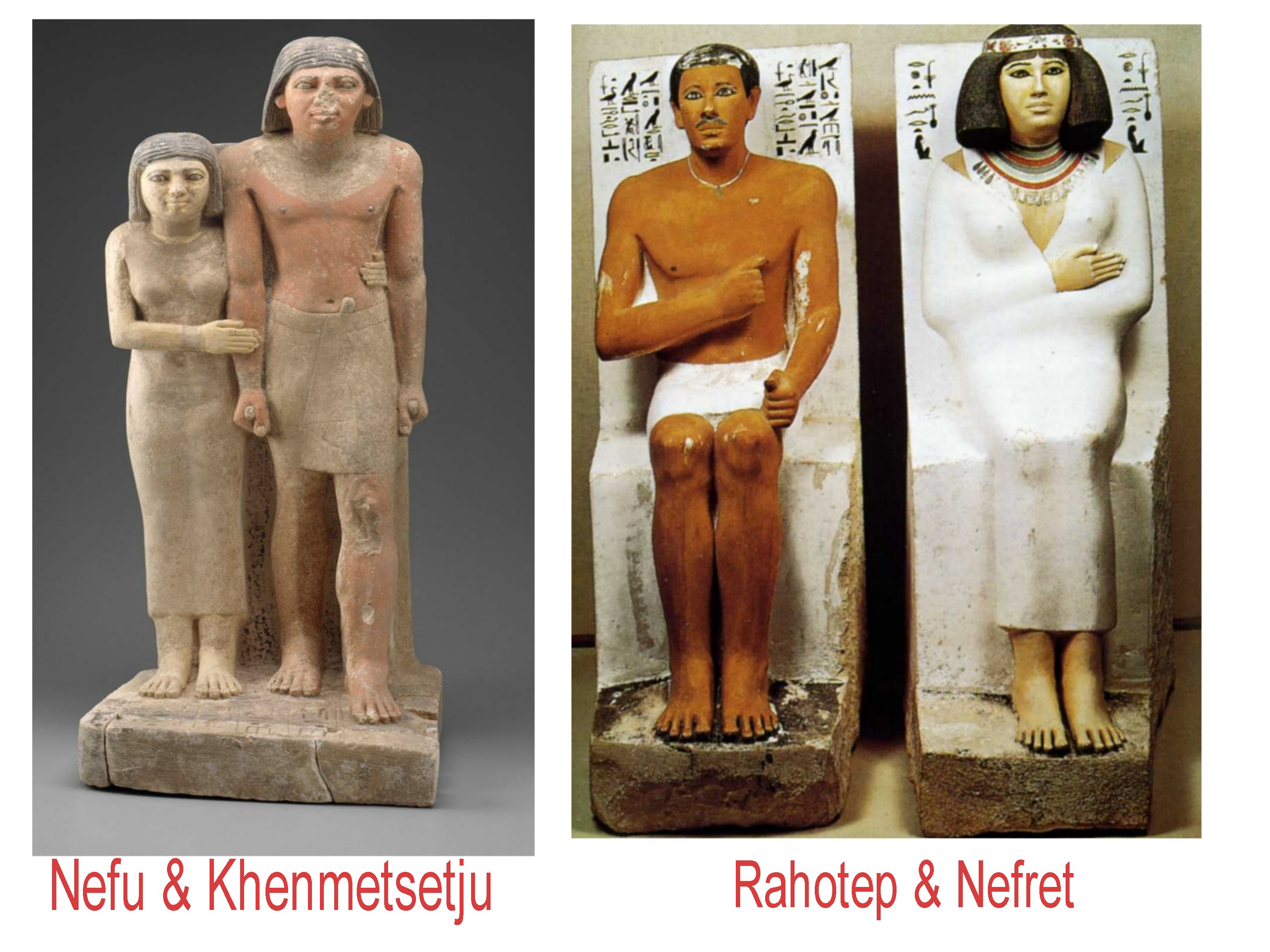 Les « statues-couples » en Egypte antique se retrouvent durant toute la durée de cette incroyable civilisation. Quelle que soit la dynastie, et même, pendant le schisme Amarnien ( Amenophis4/Akhenaton).