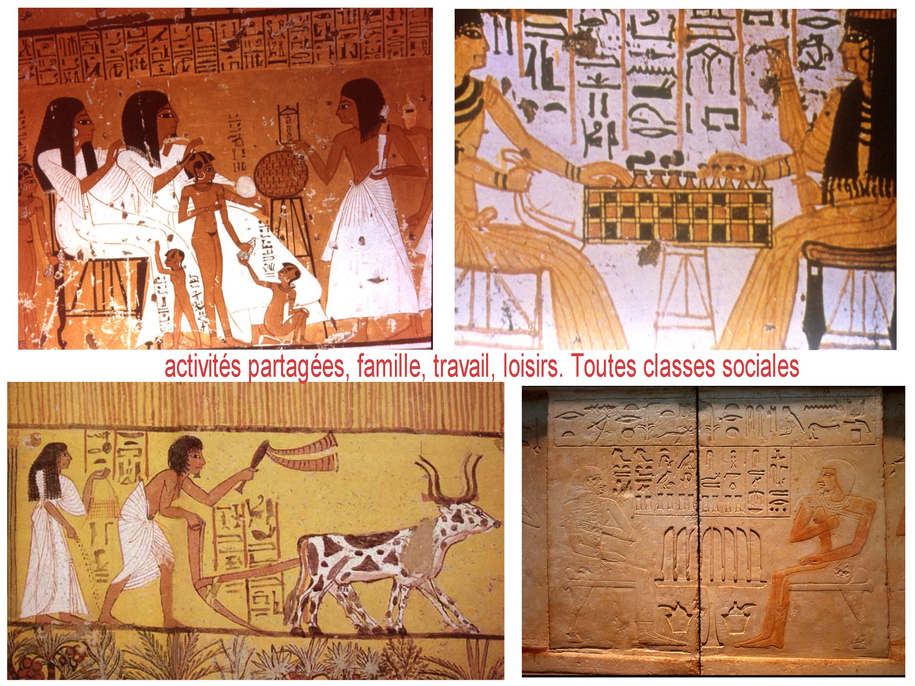 Au delà des figures emblématiques de ces statues couples, on retrouve très souvent la représentation d’activités partagées entre hommes et femmes, du labeur au loisir comme au pouvoir.