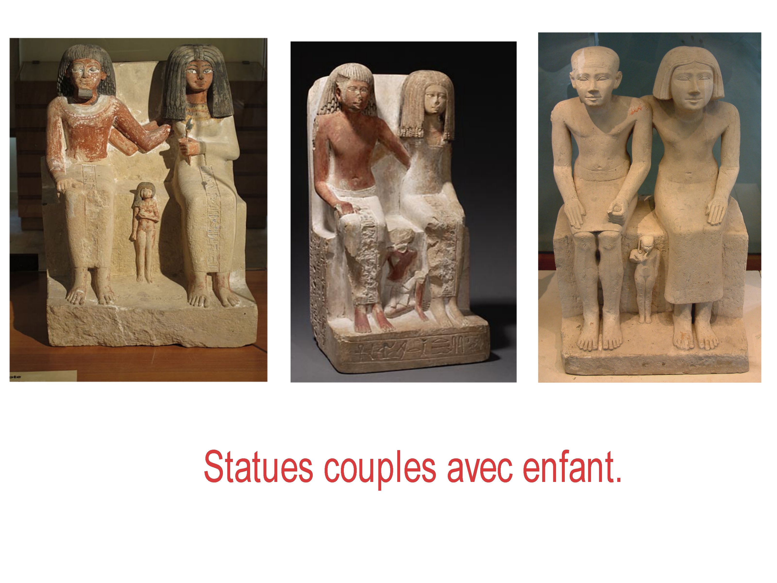 Pour repères, on retrouve des statues couples funéraires dans la tradition étrusque, contemporaine de l’Egypte antique.