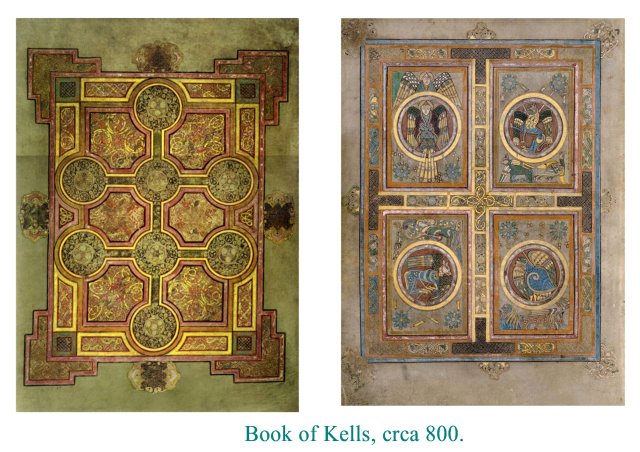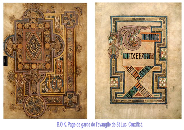 Pour ma part, j’aurais tendance à voir le b.o.Kells comme un aboutissement, « le sceau des manuscripts irlando insulaires ».