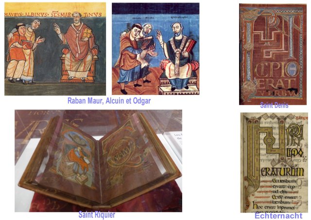 Raban Maur, brillant penseur et polygraphe religieux, sera proche d’ Alcuin à St Martin de Tours. Ces 2 intellectuels vont investir l’art des manuscrits et de la calligraphie avec une pertinence conceptuelle remarquable.