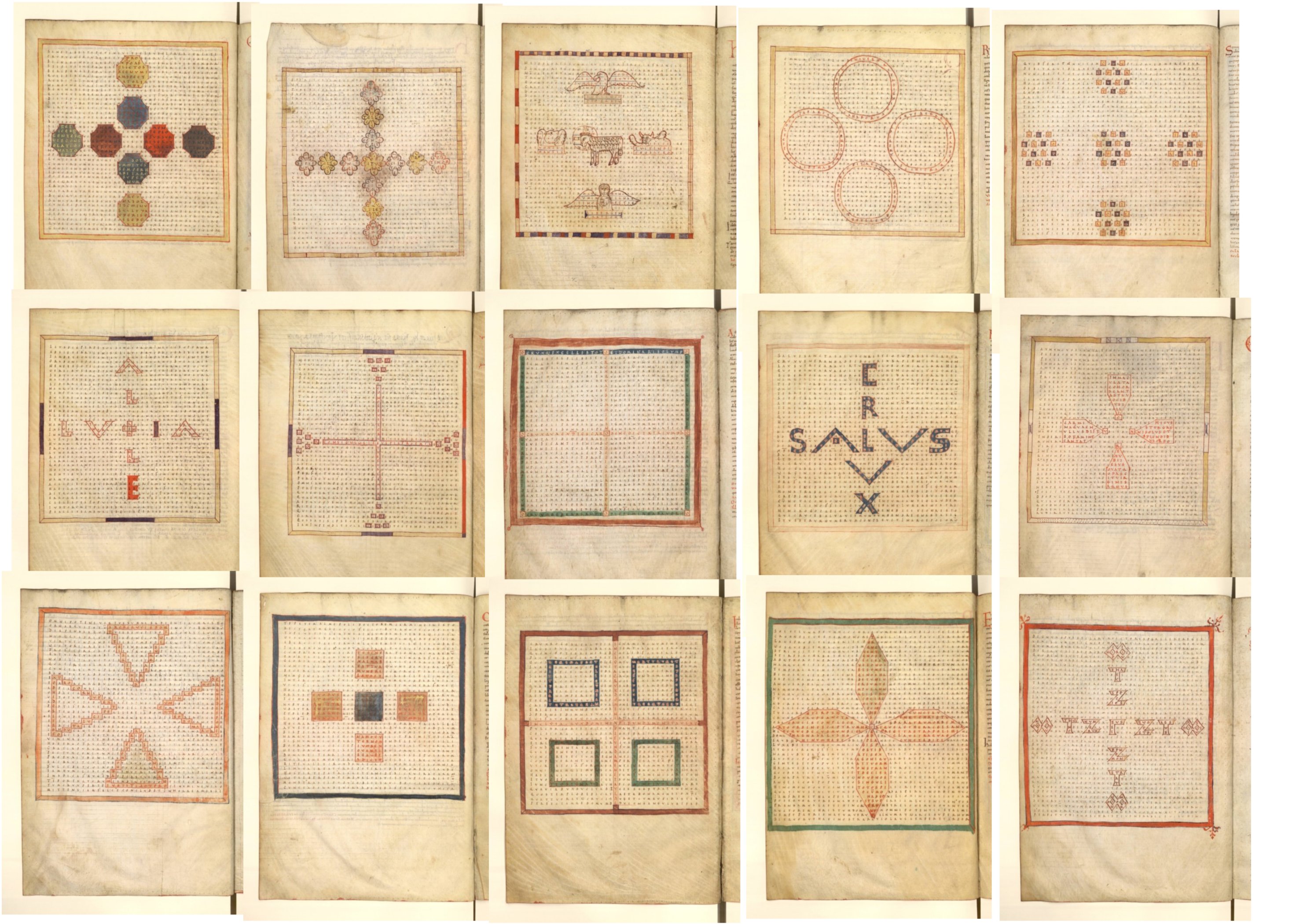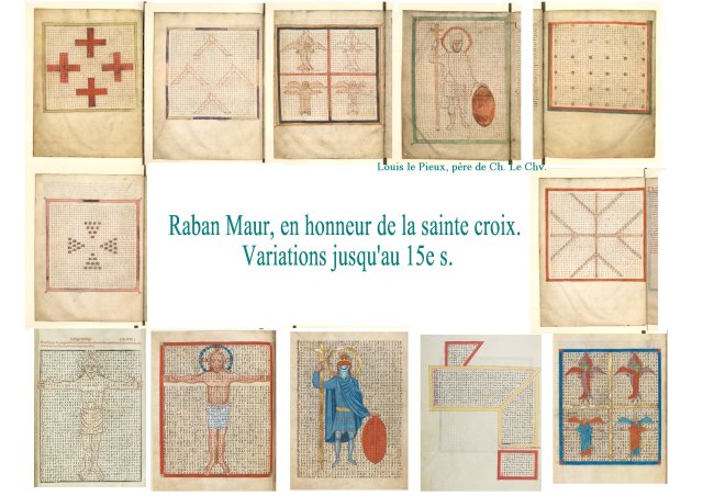 Les modèles stupéfiants conçus par Raban Maur, autour du symbole graphique de la croix vont connaître un succès pendant des siècles. Adaptation littéraire des labyrinthes et entrelacs ; on se perd dans les réseaux de lettres.