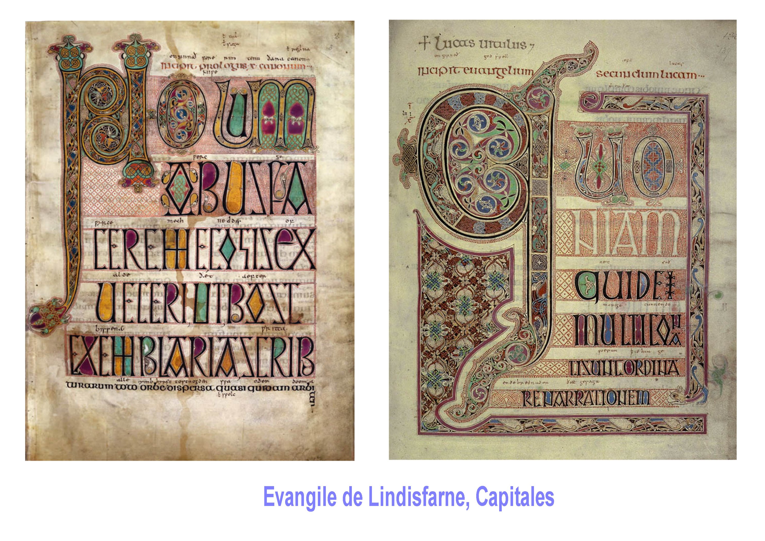 ← Book of Kells, manuscrits irlandais et carolingiens.
