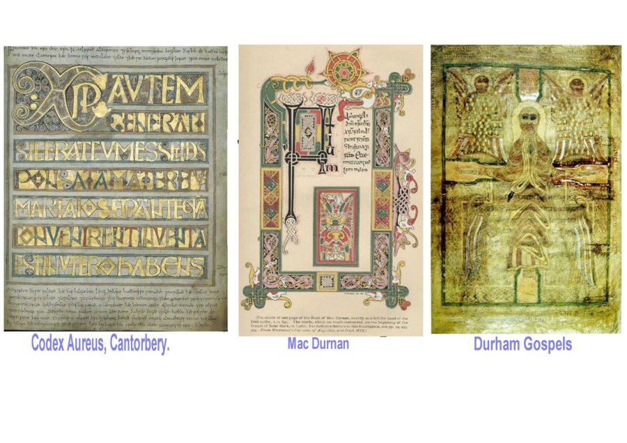 ← Book of Kells, manuscrits irlandais et carolingiens.