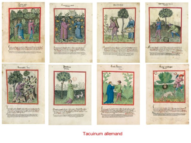 Les « tacuinum » sont l’un des témoignages les plus remarquable de culture profane, sans aucune référence à quelque religion que ce soit et d’un usage dédié à une sagesse de type épicurienne.