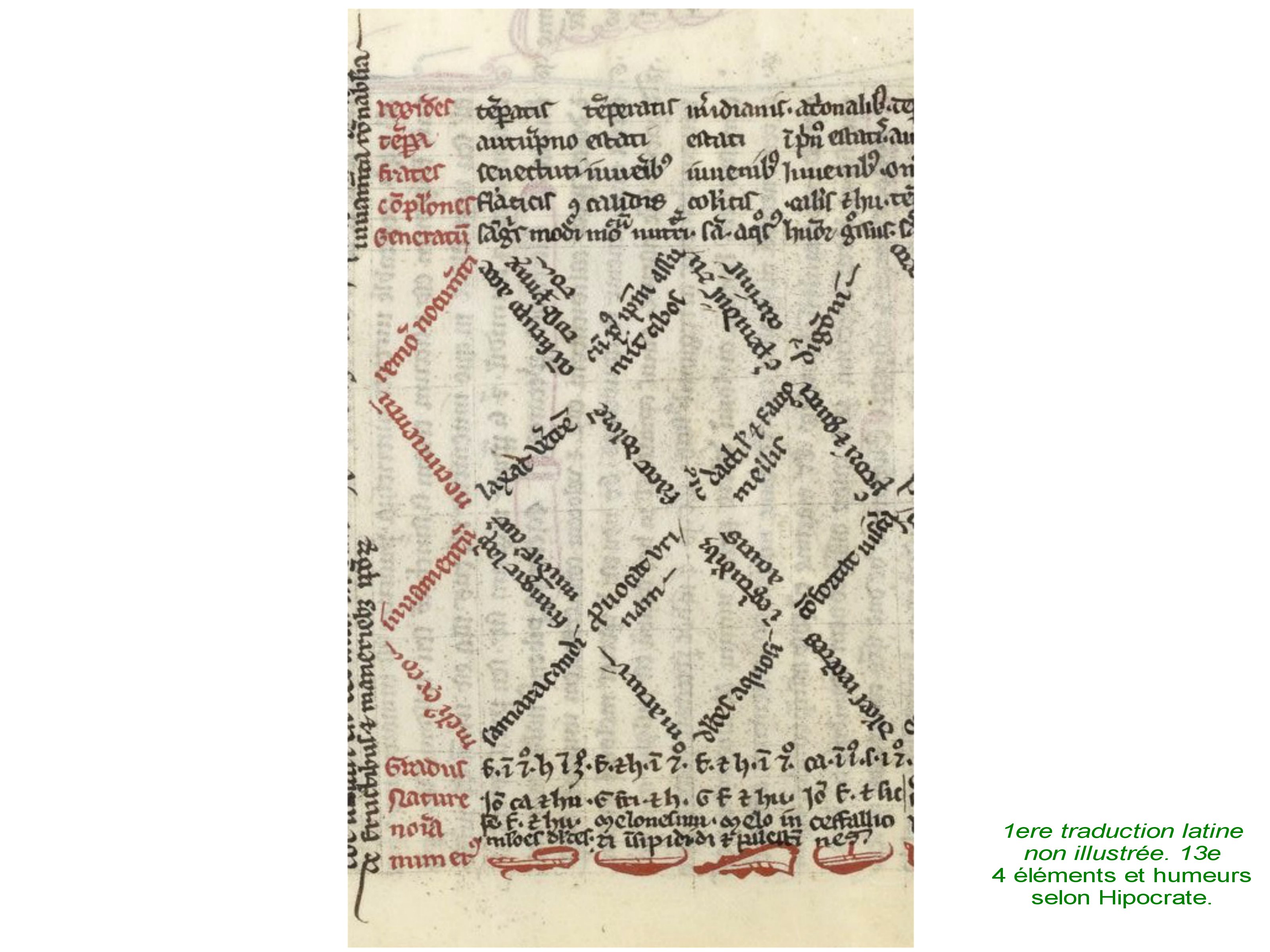 l’une des premières traductions en latin, reprend la structure croisée des éléments.